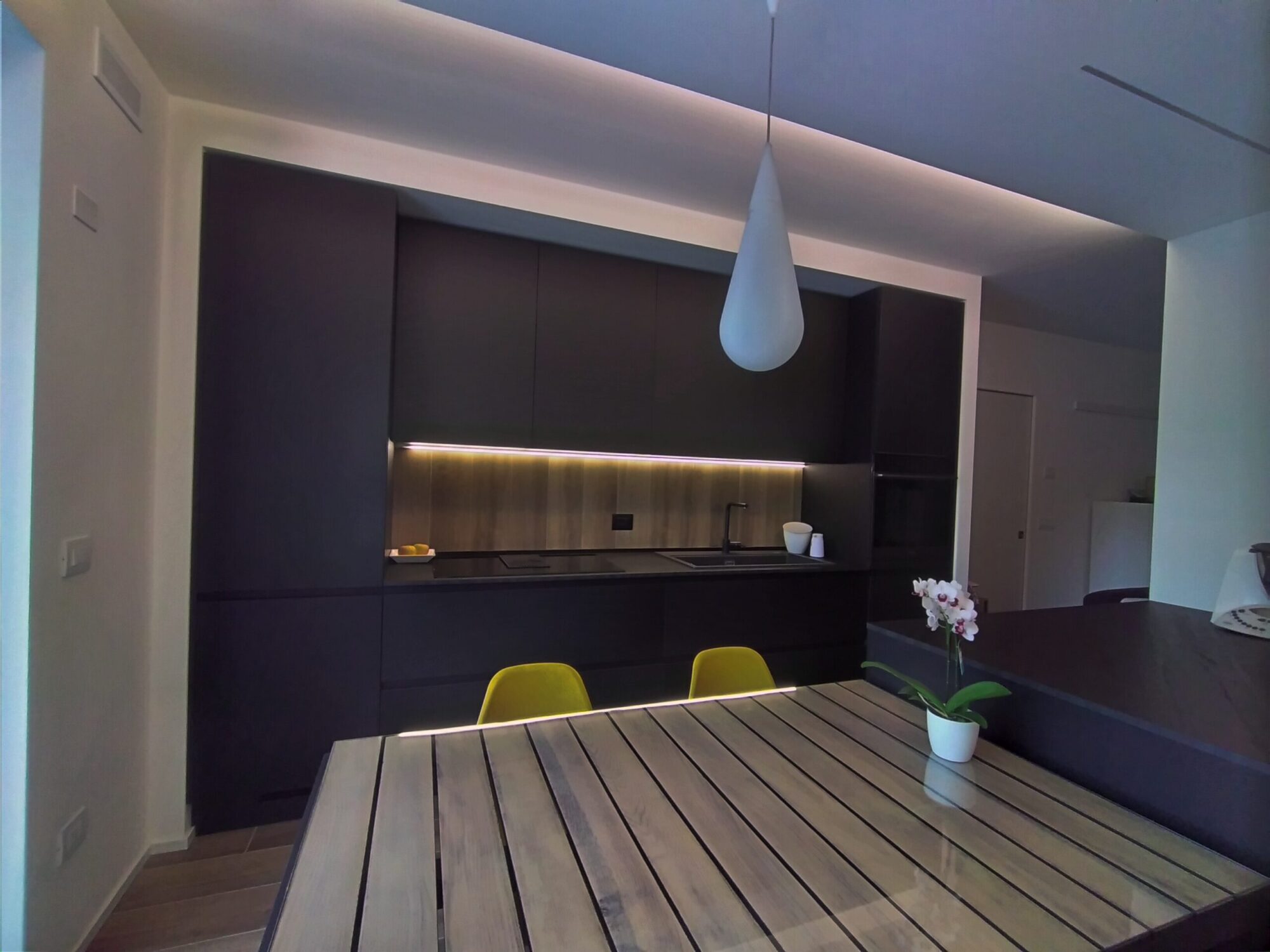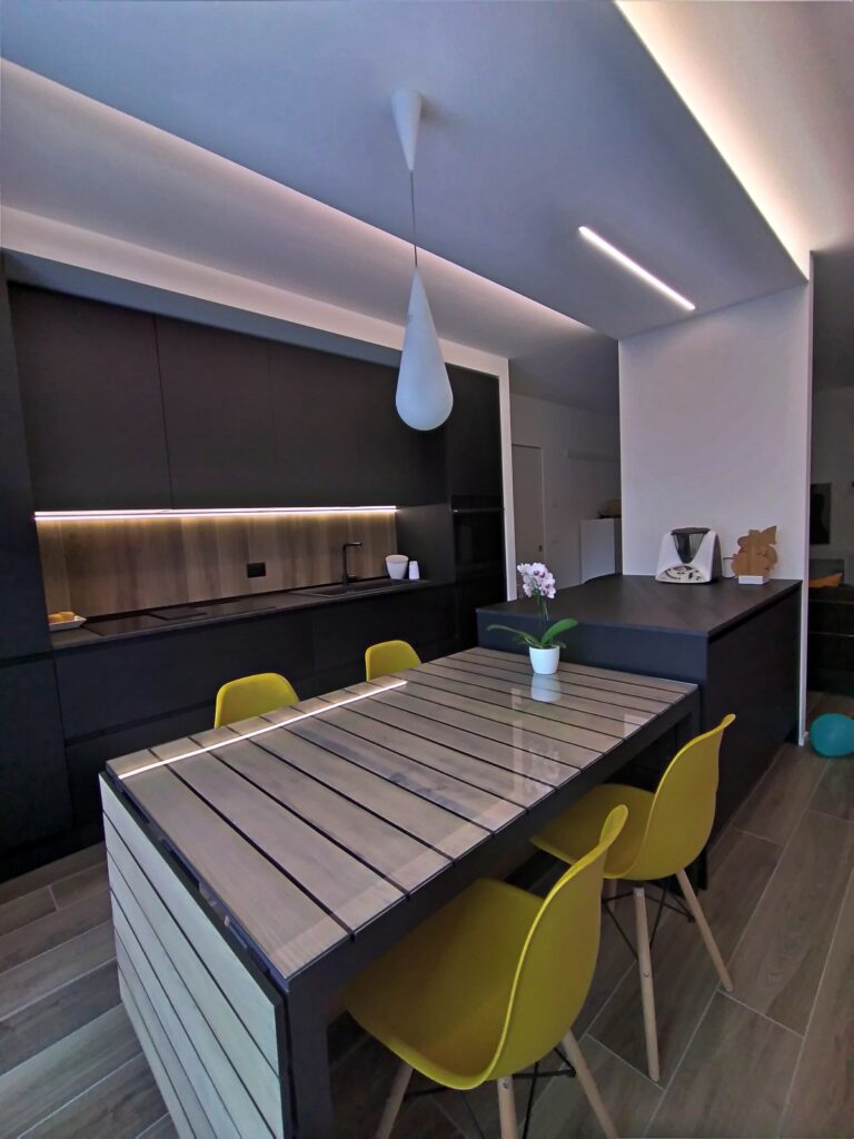 Una cucina sofisticata e moderna con ante in PET nero opaco, che conferiscono un’eleganza discreta e un look contemporaneo. Il piano in laminato nero valorizza le linee essenziali e garantisce resistenza e facilità di manutenzione. La zona operativa è dotata di piano cottura a induzione con cappa integrata, una soluzione funzionale e minimalista che mantiene pulite le superfici e ottimizza lo spazio. Il lavello ad una vasca in fragranite unisce praticità e design, resistente a graffi e macchie, perfetto per l’uso quotidiano. Una cucina che combina stile moderno e funzionalità, ideale per chi cerca un ambiente raffinato e lineare.